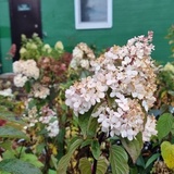 Гортензия метельчатая Скайфолл - новый сорт голландской селекции, выведенный в 2018 году, в России представлен с 2019 года. Сорт стремительно завоевал популярность благодаря роскошным, крупным соцветиям пирамидальной формы длиной 30-35 см, цвет в бутонах - фисташковый, распустившиеся цветки кремово-белого цвета, затем цветки розовеют, начиная с нижних, в соцветии, верхушка соцветия сохраняет фисташковый оттенок. Цветки крупные, четырехлепестковые, лепестки вытянутой формы, широко раскрытые. Привлекательный, востребованный сорт, эффектно выглядит в качестве солитера и в смешанных композициях. Сорт морозостойкий, зимует без укрытия, достаточно замульчировать приствольный круг.